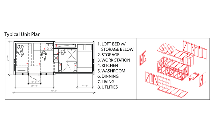 1. Provisional housing is deployed much sooner than traditional ‘mobile home’ housing because it does not require vast amounts of cleared land.