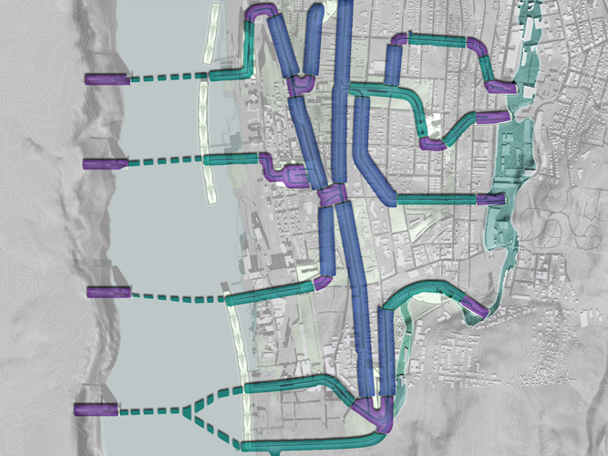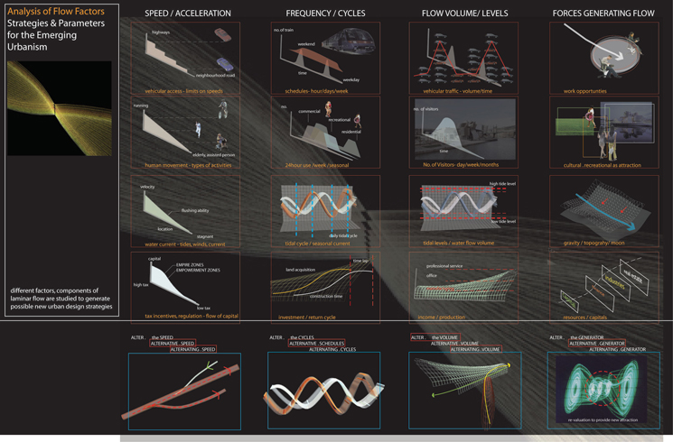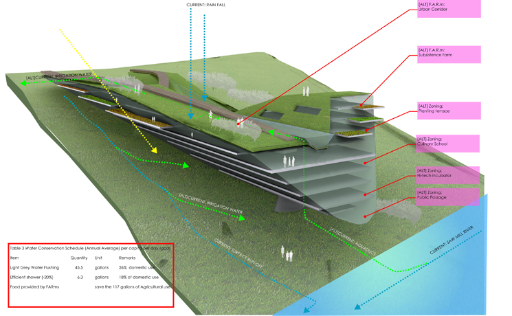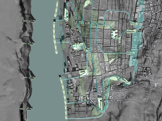 Water remains an un-realized resource within Yonkers. Simultaneously, impacts on ecological and hydrological systems to the Hudson and Sawmill Rivers have become an escalating issue. As a peripheral entity to the metropolis of Manhattan, Yonkers is bypassed by valuable infrastructure and resources derived from regional flows. The challenge becomes to capitalize on Yonkers inherent hydrological potential (k) to derive a more prominent local flow from the region and in turn returning the [ALT]ered flow to participate in the ebbs of regional exchange. The project proposes hydro-focused urban strategies which catalyze the topography to maximize the waters potential and serves as a prototype for future urban development.